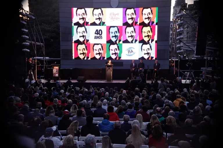 En medio de ese clima de enorme incertidumbre política que se sembró después de las elecciones del 22 de octubre, se desarrolló el acto celebratorio del padre de la democracia. Fue una convocatoria que buscó honrar a Alfonsín, aunque por la coyuntura fue inexorable el bullicio previo entre los militantes sobre qué pasará en el balotaje que disputarán mano a mano Sergio Massa, candidato a presidente de Unión por la Patria, y Javier Milei, representante de La Libertad Avanza.