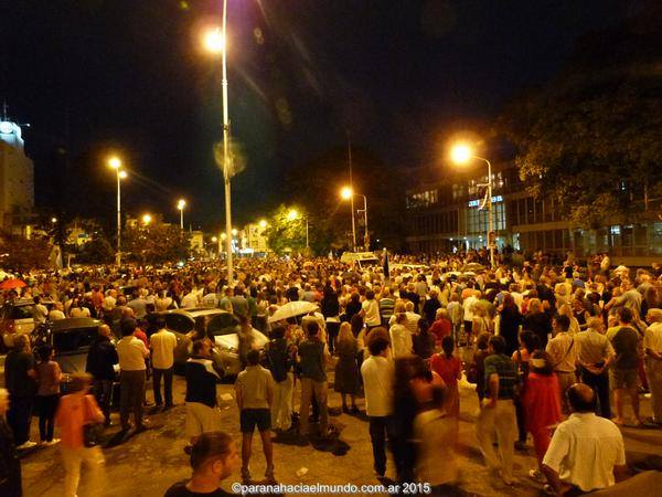 Una gran cantidad de personas se concentró desde las 20 frente a los tribunales de Paraná con el fin de exigir que se esclarezca la muerte del fiscal Alberto Nisman. Hubo momentos de silencio, otros de aplausos, se aclamó por justicia y en varias oportunidades se cantó el Himno Nacional. Luego, el titular de la DAIA leyó un breve documento y casi una hora después dio inicio una marcha hasta la Plaza de Mayo. Participaron numerosos dirigentes políticos de todo el arco opositor, pero no hubo banderas partidarias, sí de Argentina y numerosos carteles que rezaban “Somos Nisman”, entre otras consignas.