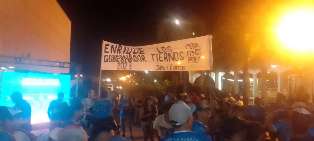Afuera se escuchaban las batucadas y los cánticos y se leían los carteles y pancartas de “Enrique Cresto Gobernador 2023”.