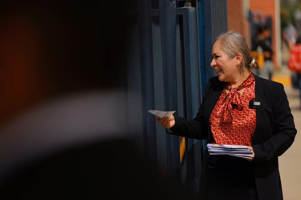 En una tarde reciente en la ciudad fronteriza de Ciudad Juárez, Delgado desafió el calor sofocante para repartir volantes y charlar con los votantes afuera de una escuela local.
