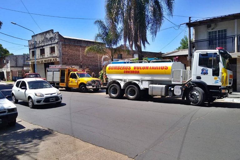 Dos dotaciones de Bomberos Voluntarios Concordia llegaron a tiempo para controlar el avance de las llamas y evitar que se esparcieran peligrosamente tanto a la totalidad del inmueble, como a las casas vecinas.