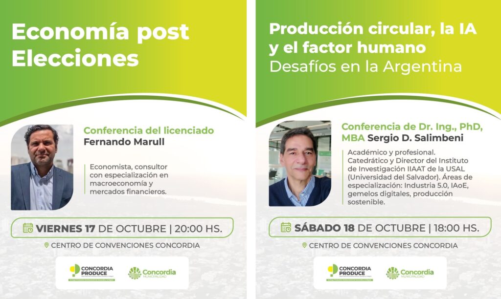 En el marco de la primera Expo Productiva Multisectorial de Concordia y la Región “Concordia Produce”, organizada por la Municipalidad de Concordia a través de la Secretaría de Desarrollo Productivo, se desarrollarán dos conferencias a cargo de reconocidos especialistas.