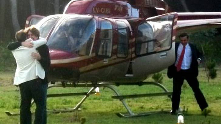 En el helicóptero viajaron Boudou y el entonces intendente de Necochea, Horacio Tellechea, con destino al «Parque Lilio» de esa localidad, donde participaron de un acto oficial con el director ejecutivo de la Administración Nacional de la Seguridad Social (ANSES) Diego Bossio, y otros funcionarios.