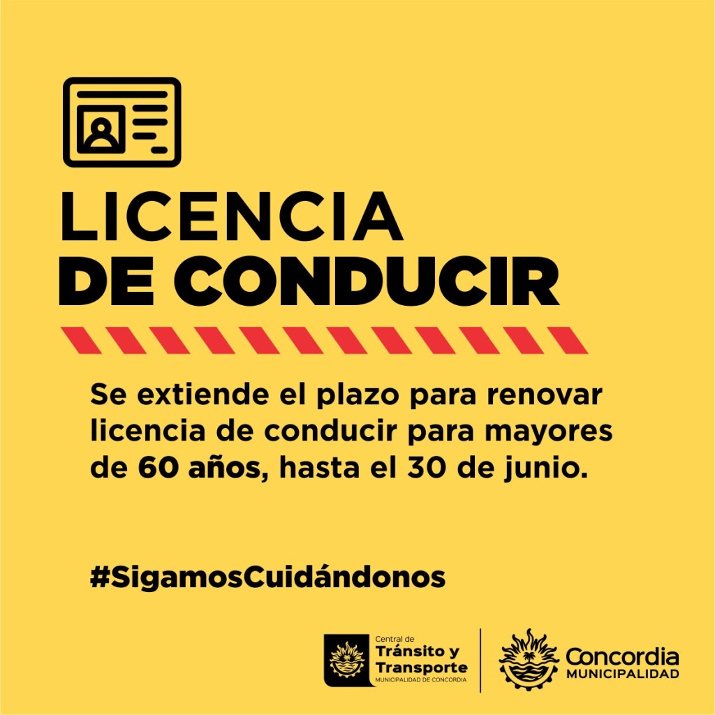 La Central de Tránsito informó que se encuentra extendido el plazo hasta el 30 de junio de 2021 para la renovación de Licencias de Conducir para los mayores de 60 años y personas de los grupos de riesgo comprendidos en el artículo 3° de la Resolución 627/2020 del Ministerio de Salud de la Nación y cuyo vencimiento haya operado al 20 de marzo de 2020.