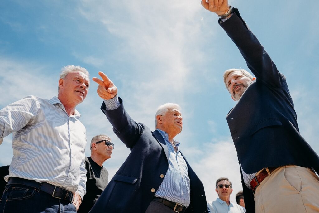 El mandatario estuvo acompañado por el intendente José Lauritto, el secretario general de la Gobernación, Mauricio Colello, el ministro de Planeamiento, Darío Schneider y el titular de la UEP, Gustavo Cusinato.