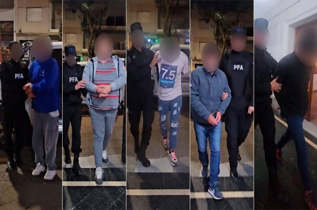 Con las pruebas recabadas por los detectives, el Juzgado de Garantías N° 7, a cargo de Carola Bacaluzzo ordenó el allanamiento a las fincas donde se logró detener a cinco hombres y a una mujer.