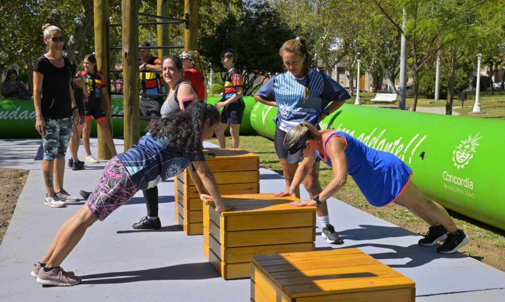 Las Estaciones Saludables se construyen con madera y materia prima de la zona, a través de un trabajo articulado entre la Asociación de Carpinteros y la Municipalidad de Concordia. Cada estación se compone de cinco postas que posibilitan desarrollar diferentes patrones de movimiento (trepar, traccionar, sostener, saltar, elongar y equilibrar).