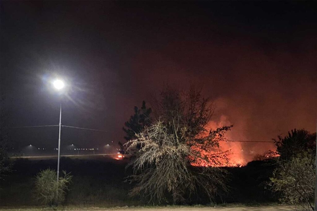 Un incendio forestal afectó a una franja ubicada entre las avenidas Presidente Perón y Arturo Frondizi en el acceso sur a Concordia en las primeras horas de la noche de este martes.