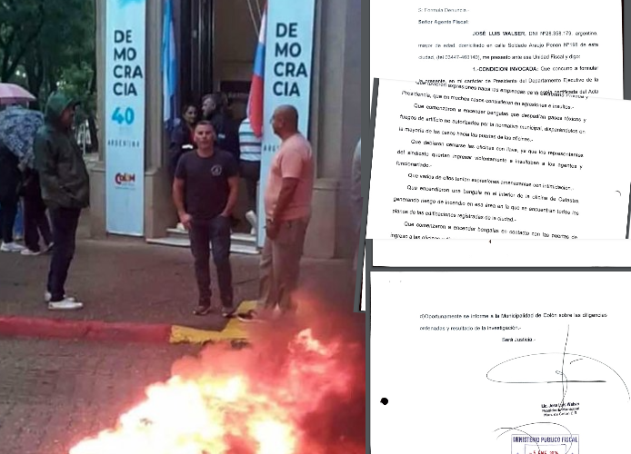 En la presentación, Walser formuló “denuncia por la posible comisión de hechos ilícitos de naturaleza penal, perpetrados en perjuicio de la Administración Municipal” ocurridos en la protesta del 6 de diciembre en el edificio de la Municipalidad de Colón, ubicado en la esquina de Hernández y 12 de Abril, cerca de las 7. Ese día se bloqueó el ingreso al edifico con cubiertas usadas.