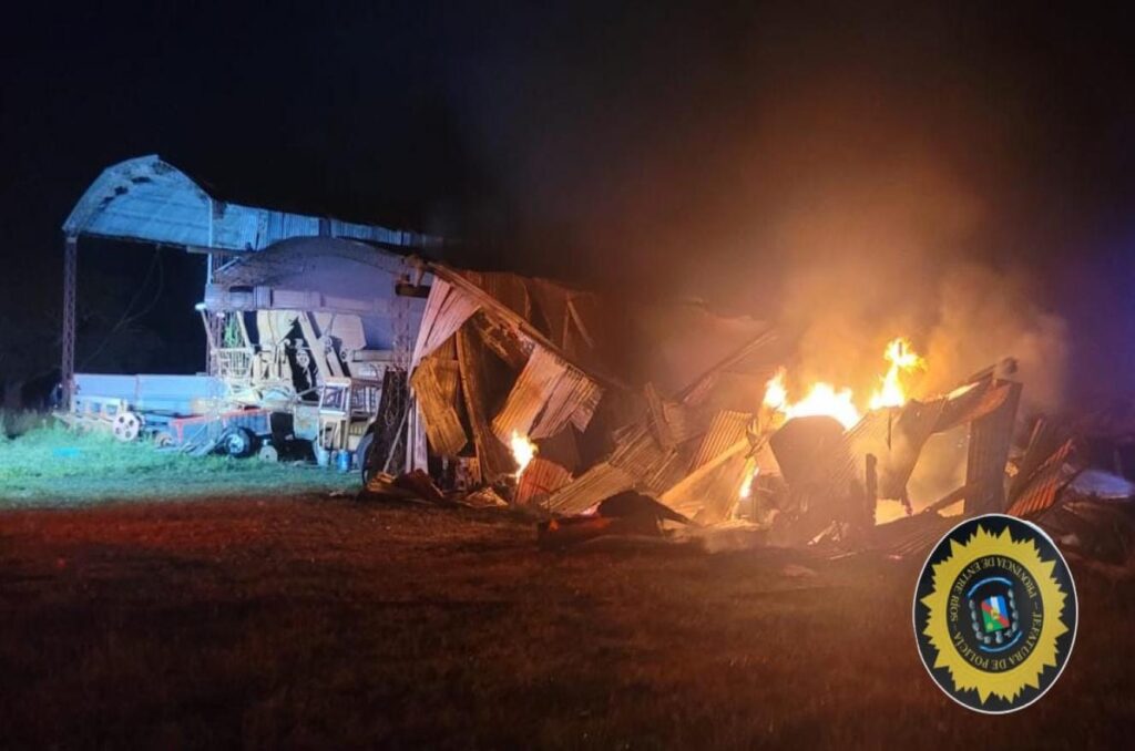 Este martes por la noche, alrededor de las 20, personal policial de la Jefatura Departamental San Salvador intervino en un incendio ocurrido a 6 kilómetros al este de la localidad, donde un galpón resultó consumido por las llamas.