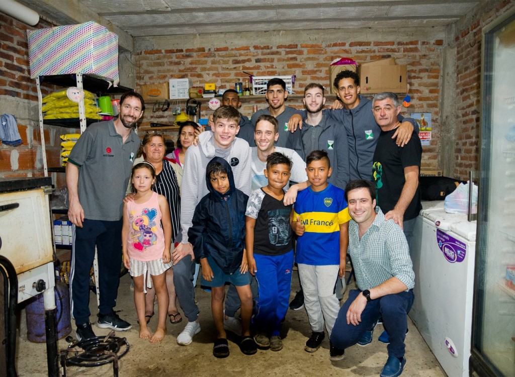 Gonzalo Torres, Enzo Cafferatta, Federico Grun, Joaquín Rodríguez, José Ascanio, Enderson Alcalá y el entrenador Eduardo «Chiche» Jápez concurrieron, en representación del equipo, este lunes por la tarde hasta el merendero donde los recibió Mabel, la incansable mujer que prepara la merienda los lunes, miércoles, jueves y viernes; además de una cena los martes.