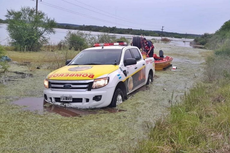 Durante estas últimas horas, las tareas de rastrillaje estuvieron concentradas en la zona del puente de la ruta 14, sobre el arroyo Yuquerí Chico, que está completamente desbordado por la creciente.
