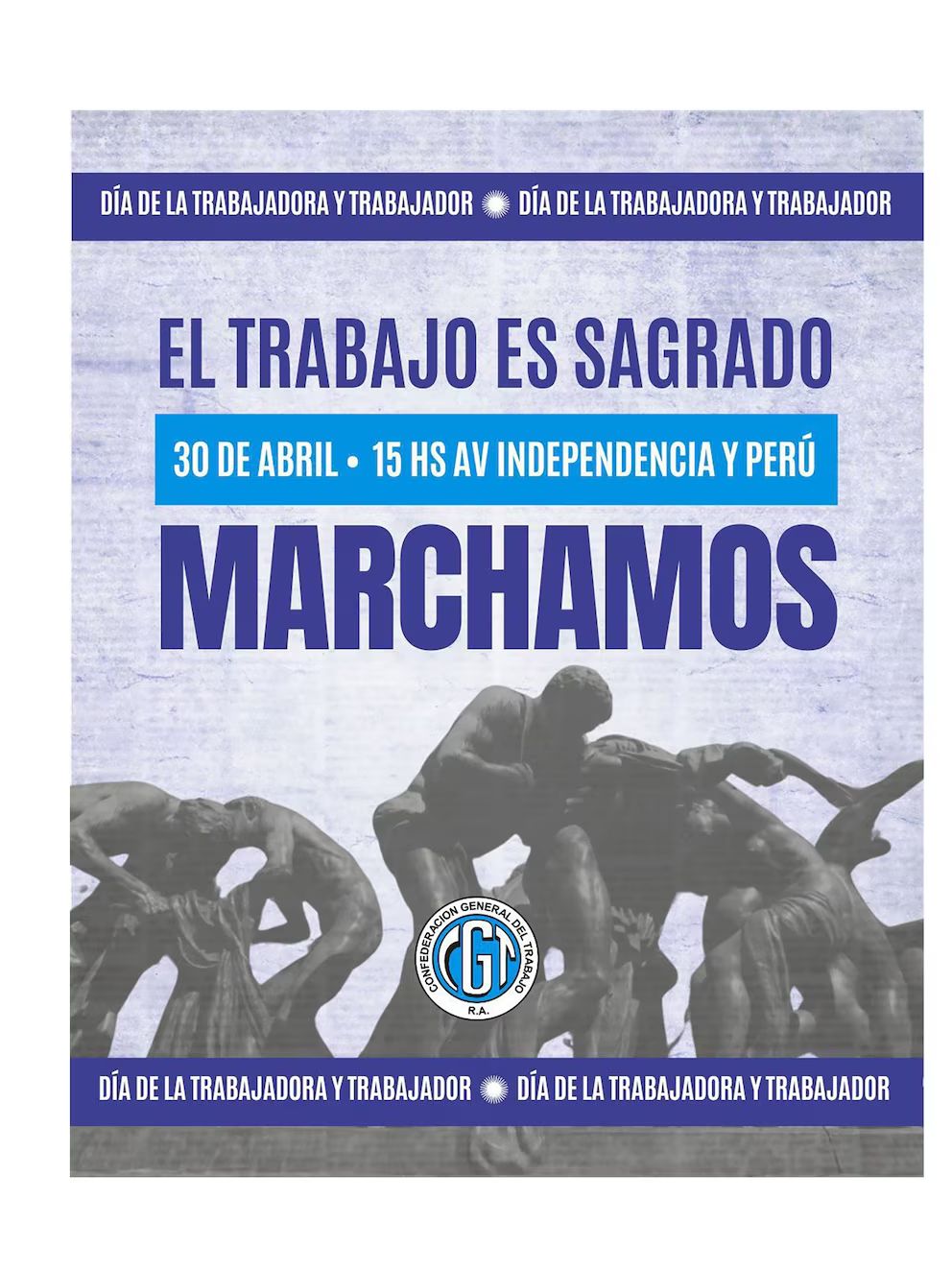 La cúpula cegetista se concentrará a las 15 en la avenida Independencia y Perú, donde tendrá lugar una oración por el Papa Francisco, y luego se marchará hasta el Monumento Canto al Trabajo, en Paseo Colón al 800. Allí se instalará una gigantografía de Bergoglio y en una pantalla gigante se exhibirán videos del fallecido Papa.