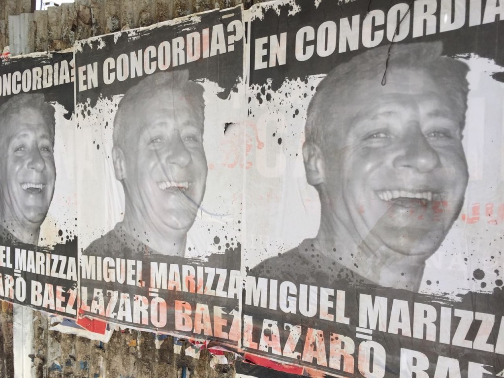 Ayer a la mañana la ciudad amaneció empapelada con afiches de fotos del empresario de la construcción Miguel Marizza comparándolo con Lázaro Báez. En ellos se pueden ver la cara de Miguel Marizza, uno de los principales contratistas del gobierno del ex Gobernador Sergio Urribarri en materia de obra pública.
