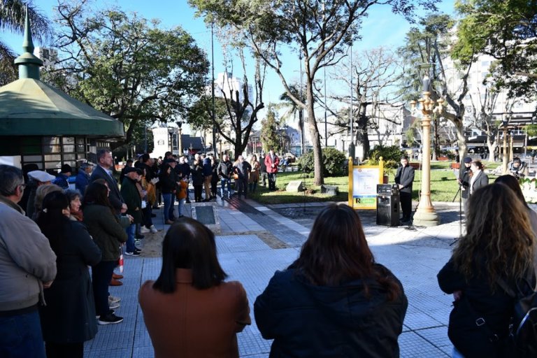 En la actividad realizada en la mañana de este martes en la plaza 25 de Mayo, sonó la sirena del camión de los bomberos a las 9:53, hora en que se produjo el atentado el 18 de julio de 1994.