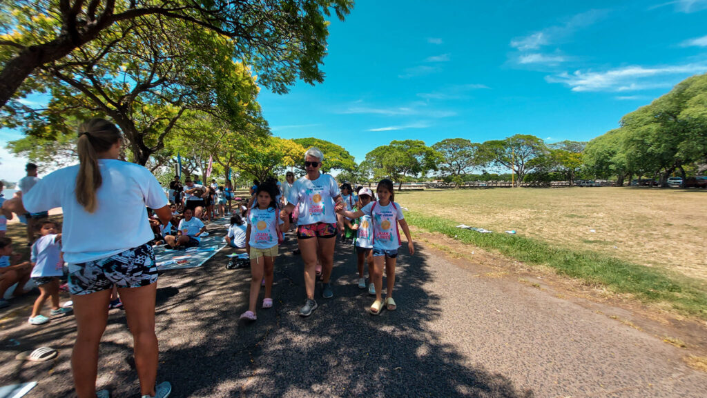 “Dando inició a las actividades en el marco de la Fiesta Nacional Del Lago acompañé a niñas y niños en la tradicional caminata del niño pintor”.