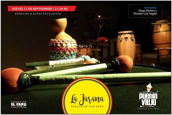 Durante la velada el ensamble LA JARANAdirigido por Atilio Notragiácomo, y conformado por algunos de los más reconocidos percusionistas de nuestra ciudad(Sebastián Arletazz, Mario “Cholo” Spinelli, Manolo Gaztambide, Vale Goy, Luli Cabreray Osvaldo Orlando); intepretará temas acompañando al cantautor Diego Bertoni, que estará acompañado por el percusionista RICARDO “URU” FAGIAN, también reconocida por su trayectoria como director de ensambles de percusión por señas.