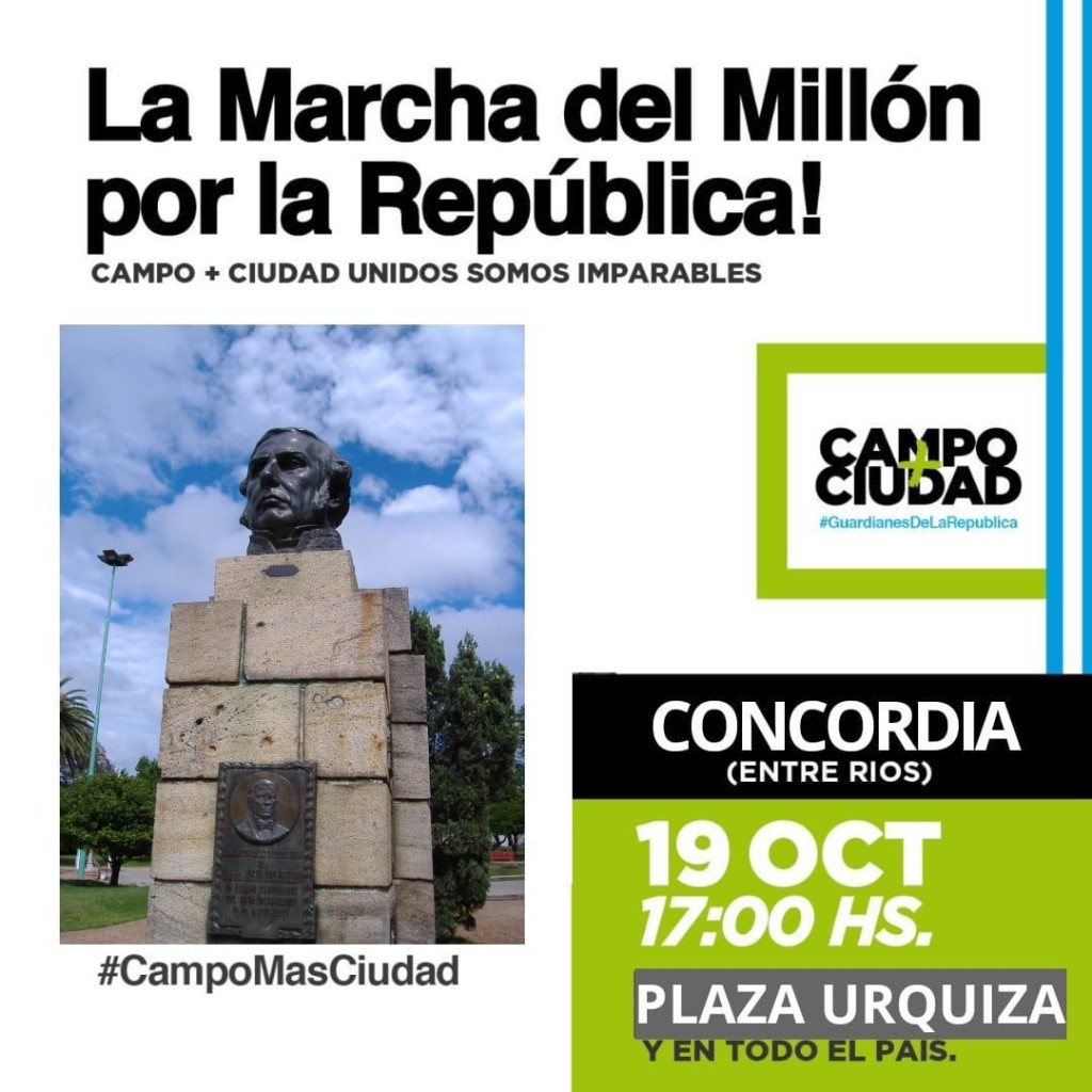 Convocada por el grupo autodenominado «Guardianes de la República», la concentración será este sábado, a las 17, en la Plaza Urquiza de Concordia y en la plaza San Martín, de Gualeguaychú en simultáneo al acto que el Presidente anunció que hará en el Obelisco de Buenos Aires.