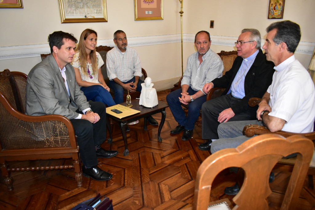 Durante el encuentro se recordó la figura del Padre Andrés Servin, a 3 años de su fallecimiento, y el importante aporte social y espiritual que realizó en la ciudad. A su vez se revisó el convenio sobre el Teatro Auditorium. «Hablamos de muchos temas que tienen que ver con la relación entre la Iglesia y la Municipalidad, y también de la situación social de la ciudad», dijo el intendente Enrique Cresto al finalizar el encuentro.