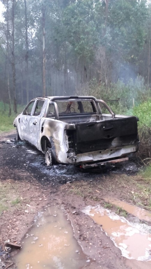 En las primeras horas de la mañana de ayer alrededor de las 6:00, personal de la Comisaría de Osvaldo Magnasco localizó quemada en calle Vuelta de Obligado a unos 200 metros de la autovía Gral. Artigas en zona de montes, una camioneta Ford Ranger; que había sido sustraída en la madrugada en la ciudad de Chajarí junto a otros efectos.