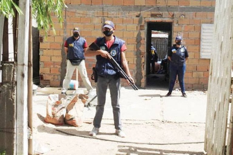 Si bien los procedimientos estaban en pleno proceso, los investigadores indicaron a un cronista de Diario Río Uruguay presente en el lugar, que en el punto allanado se encontró cocaína, dinero en efectivo, elementos de corte y fraccionamiento, entre otros componentes de interés para la causa. CRÉDITO: Diario Río Uruguay
