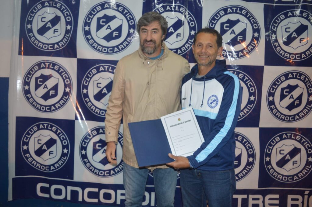 En el marco de los 90 años del club Ferrocarril de Concordia, el presidente de la Cámara de Diputados, Angel Giano, entregó al presidente de la entidad, Andrés Giles, el título que hace efectiva la transferencia del espacio en el que funciona el campo de deportes, por calle Salto Uruguayo.