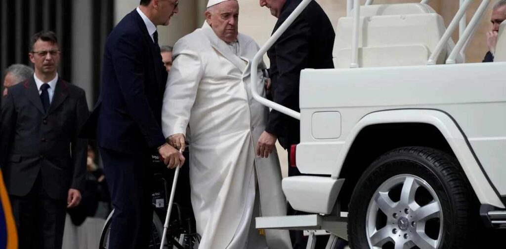Jorge Bergoglio presidió este miércoles la habitual audiencia general de los miércoles. Aunque continuó hasta el final hablando, bendiciendo a los fieles y hasta dando la vuelta final por la plaza de San Pedro en el Papamóvil, al que subió con mucho esfuerzo, en el transcurso de la audiencia dio varias veces señales de sufrimiento y de dificultades.