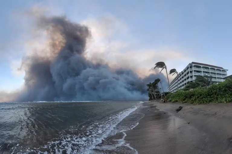 Los incendios, alimentados por los fuertes vientos del huracán Dora que pasó bastante al sur, tomaron a la isla de Maui por sorpresa y dejaron tras de sí autos calcinados en unas calles antes concurridas y montones de escombros humeantes donde se levantaban edificios históricos. El fuego azotó durante toda la noche y obligó a adultos y a niños a meterse en el océano en busca de seguridad.