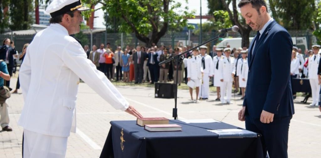 Sobre Allievi, el ministro destacó que «navegó durante décadas por nuestras aguas, sirviendo a la patria con coraje y profesionalismo», y celebró que «esa experiencia lo pone al frente de la conducción de la Armada, listo para asumir los desafíos complejos de los tiempos que corren».