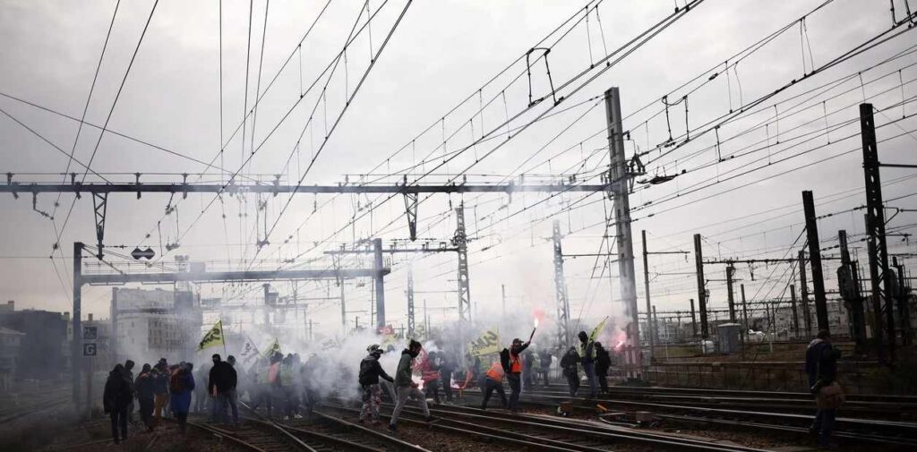 La huelga continúa en Francia. Hay vuelos anulados el jueves y viernes. Trenes y Metros reducidos. La tensión se ha iniciado en Rennes, donde los bomberos fueron obligados a partir bajo insultos cuando querían combatir un incendio de los manifestantes.