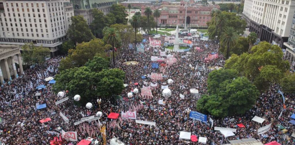 A 49 años del último golpe militar, decenas de miles de personas se congregaron en la Plaza de Mayo, tras confluir desde diferentes puntos y en movilizaciones que incluyeron a La Cámpora, el peronismo no kirchnerista, el radicalismo, la CGT, los movimientos sociales y los organismos de derechos humanos, que leyeron un pronunciamiento con duras críticas al gobierno de Javier Milei.