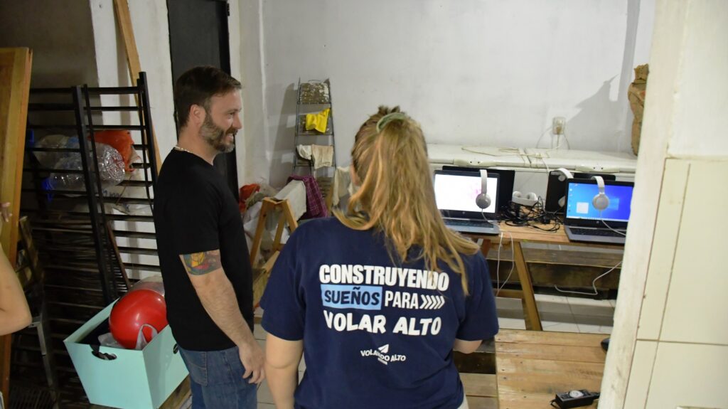 Por este motivo, el intendente Francisco Azcué llegó hasta el barrio La Bianca, uno de los lugares donde “Volando Alto” lleva adelante este importante trabajo de prevención de deserción escolar, donde felicitó a todo el equipo de la fundación por el compromiso que tienen por la comunidad.