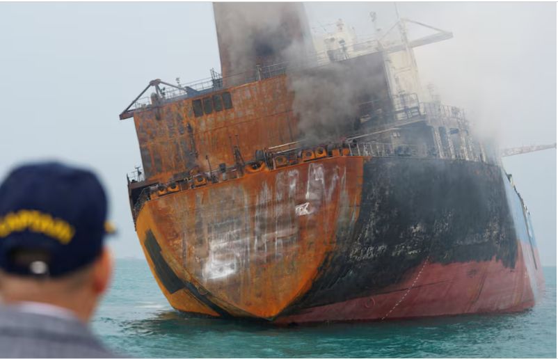 Imágenes verificadas por Reuters como filmadas desde la costa del puerto de Basora mostraron barcos envueltos en enormes bolas de fuego naranja que iluminaron el cielo nocturno, después de los ataques que las autoridades iraquíes atribuyeron a barcos iraníes. Al menos un miembro de la tripulación murió.