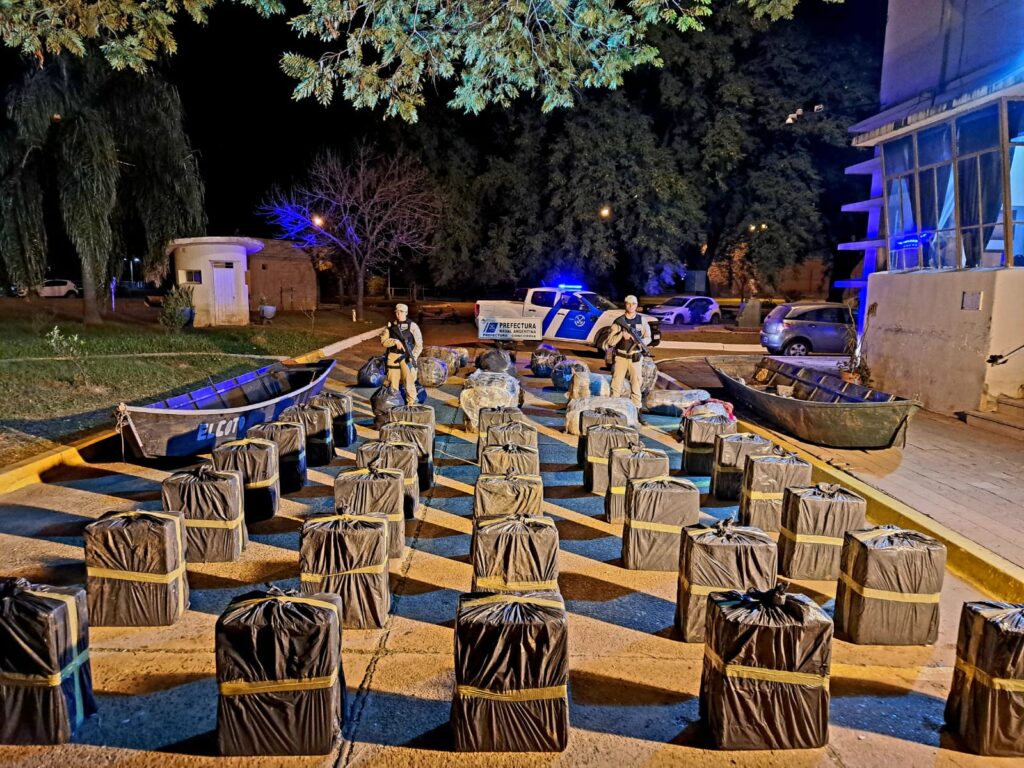 Alrededor de las 22 horas de este martes, el personal de Investigaciones de la Prefectura Concordia que realizaba una recorrida en cercanías al kilómetro 328 del río Uruguay, en la zona conocida como “Los Ranchos”, visualizó a dos botes de chapa completamente cargados con bultos negros, que se disponían a cruzar de manera ilegal al vecino país, infringiendo la Ley 22.415 (contrabando).