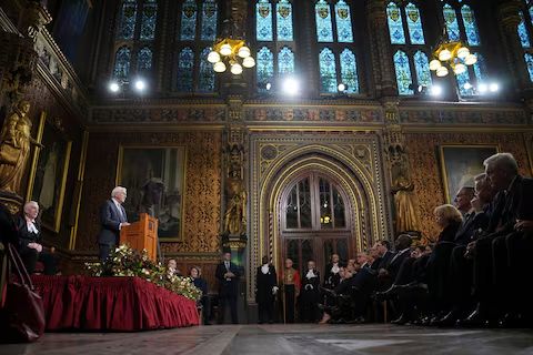 Steinmeier se dirigió a los políticos en el Parlamento durante la primera visita de estado de un presidente alemán en 27 años, un viaje que comenzó el miércoles cuando el Rey Carlos y la Reina Camila le dieron la bienvenida a él y a su esposa Elke Budenbender en el Castillo de Windsor para una procesión en carruaje y un banquete de estado.