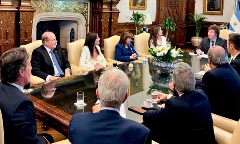 Con ellos estuvieron el ministro de Economía, Luis Caputo; el titular de Interior, Guillermo Francos; la canciller Diana Mondino y el presidente de la Cámara de Diputados, Martín Menem.