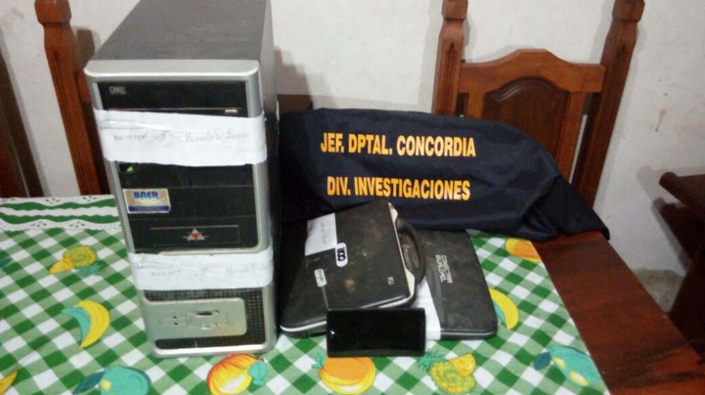 El procedimiento se llevó a cabo en un domicilio de calle Giulani, donde se notificó un hombre de 49 años. Se procedió al secuestro de un teléfono celular marca LG modelo G4, dos computadoras del plan conectar igualdad marca CDR y un CPU marca Data visión. En el lugar con la presencia de la delegada judicial, se notificó a un menor, en compañía de sus padres, para que comparezca en el día de la fecha, para entrevista con la fiscal de turno.