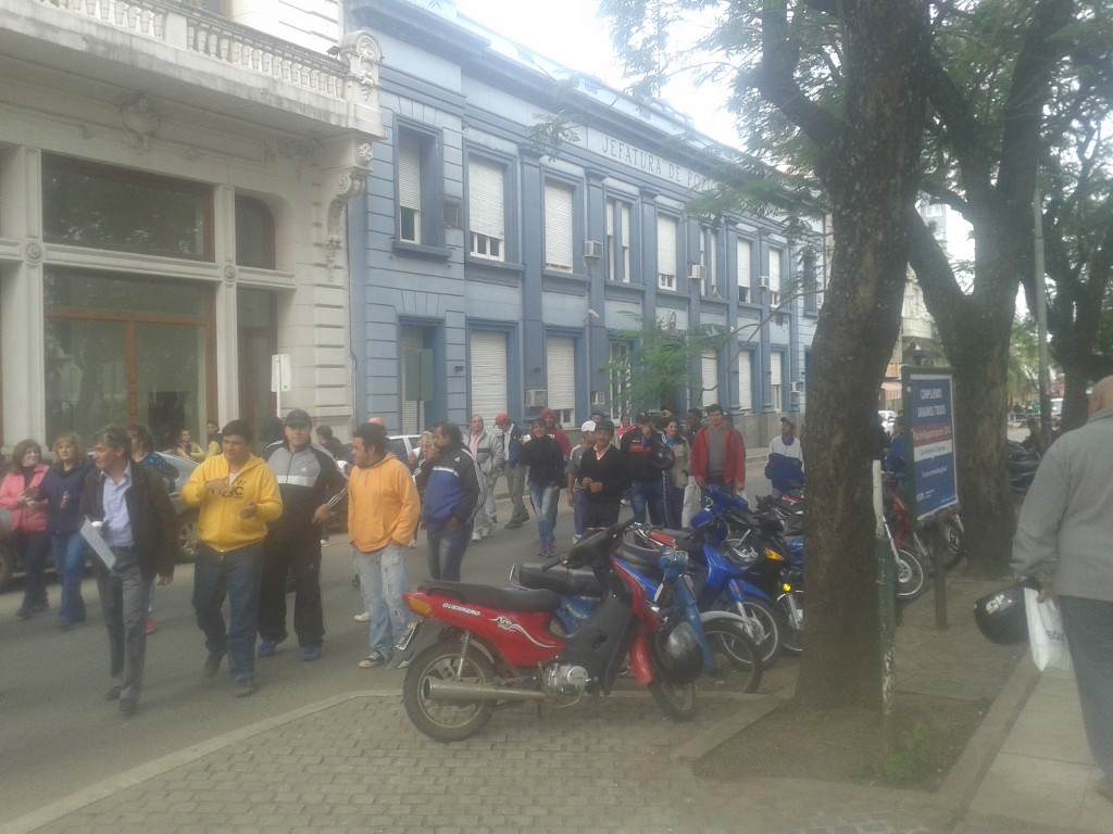 En torno de la plaza 25 de Mayo se realizó una manifestación, que se detuvo frente a la Jefatura de Policía y entonó cánticos contra los efectivos que participan junto a los inspectores de tránsito de los operativos. El medio centenar de personas que participaba ingresó luego a la Municipalidad para expresarles a las autoridades municipales su reclamo.