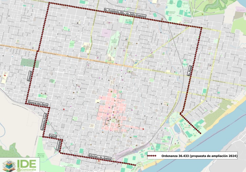 Al Este: Boulevard Maipú y su continuación por Salta/Gastelacoto hasta el Río Uruguay.