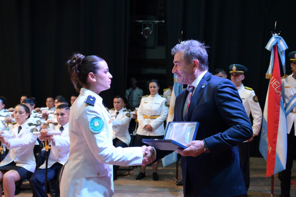 El ministro Roncaglia destacó la importancia del acto para la institución y para la comunidad entrerriana. «Hoy celebramos el esfuerzo, la vocación y el compromiso de cada uno de los estudiantes. Esta ceremonia representa no solo el cierre de una etapa de formación, sino también el inicio de una carrera de servicio público que exige responsabilidad, profesionalismo y entrega», expresó.