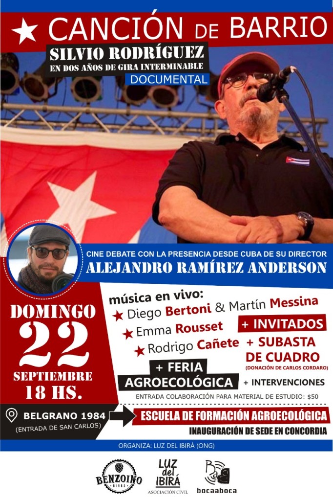 Este domingo 22 de septiembre a partir de las 18 hs. se proyectará el documental «Canción de Barrio», que narra la gira que realizó el mundialmente reconocido cantautor Silvio Rodríguez por los barrios más humildes de Cuba durante dos años. Se contará esa misma tarde con la presencia de su director Alejandro Ramírez Anderson.