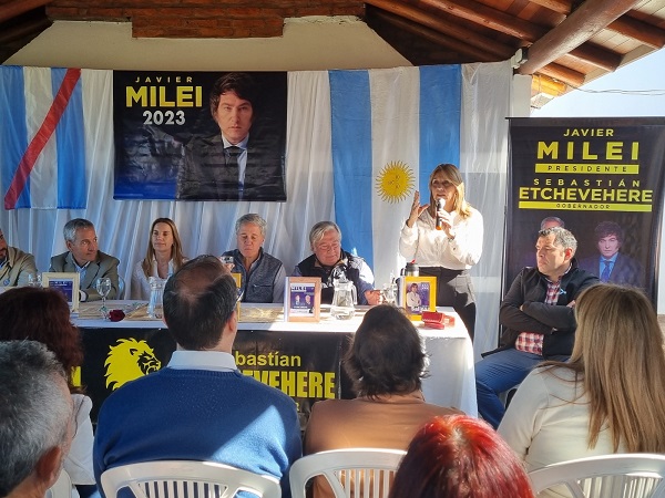 “Todos queremos prosperar, todos queremos ser mejores; tener más dinero para vivir mejor, para darnos los gustos, porque a la vida venimos a prosperar. Ese estigma de que a la vida venimos a padecer, lo dicen los socialistas. Nosotros queremos un mundo capitalista, donde podamos ganar, triunfar; tener tu buena casa, tu auto; poder educar a tus hijos en una escuela pública, en una universidad pública, ser feliz y que te quede resto para tu jubilación”, expresó en el acto que tuvo lugar en el complejo de cabañas Mi Sueño.