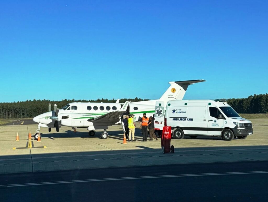 La terminal aérea de Concordia recibió un vuelo que trasladó una paciente hacia Uruguay. La aeronave utilizada en este traslado fue un Beechcraft King Air B-200 de la empresa Aerovida, una firma fundada y dirigida por médicos que se dedica a la realización de vuelos sanitarios desde hace más de 36 años.