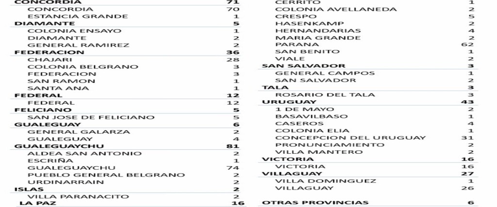 *Departamento Villaguay 27, distribuidos en: