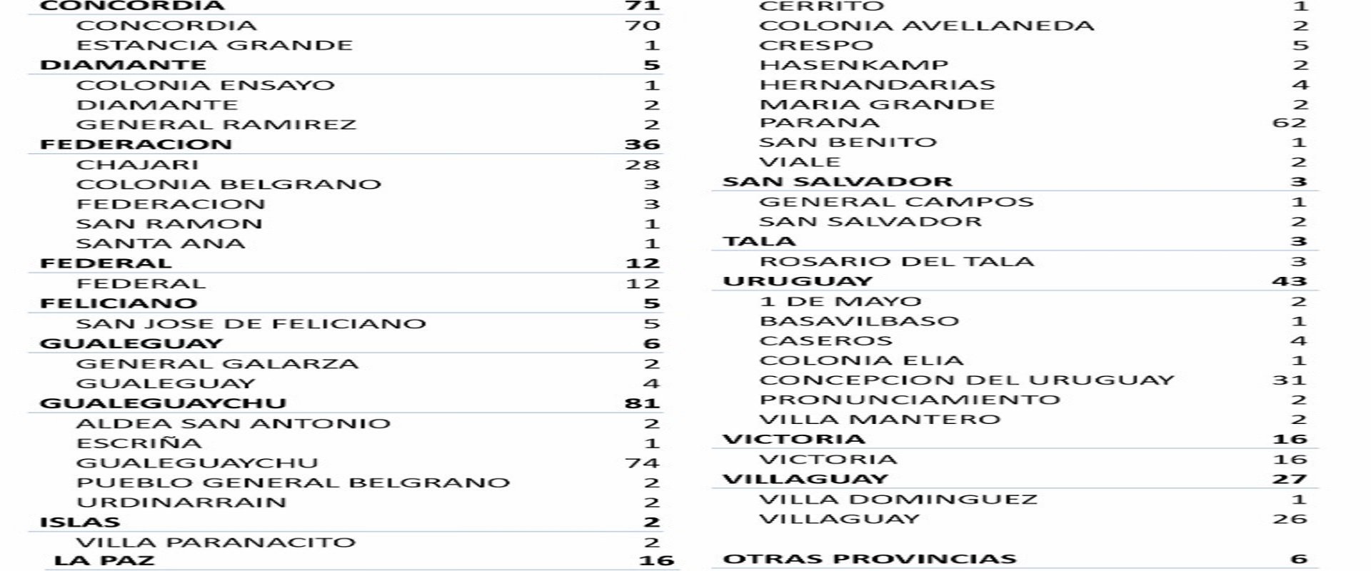 La segunda muerte notificada corresponde a una paciente de 84 años, de Hasenkamp institucionalizada en el hospital Dr. Brague Villar de la localidad. En tanto, las últimas dos fallecidas eran oriundas de Gualeguaychú, de 45 y 94 años respectivamente, ambas hospitalizadas en el Centenario de la ciudad.