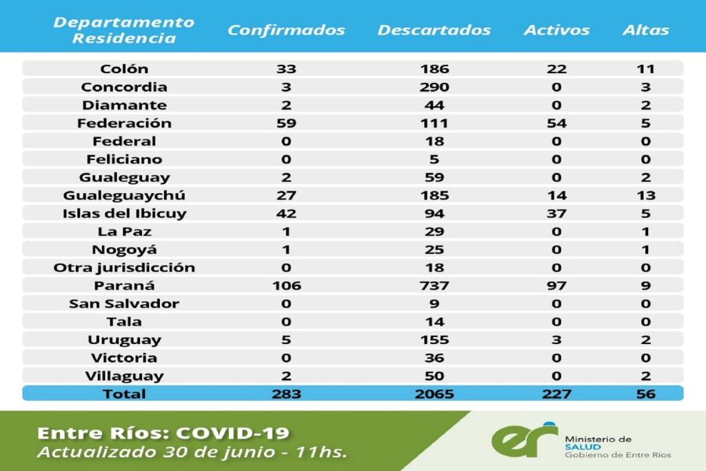 Los últimos dos, fueron detectados en la localidad de Villa Elisa, departamento Colón, tratándose de personas relacionadas con el caso ya confirmado el día domingo pasado.