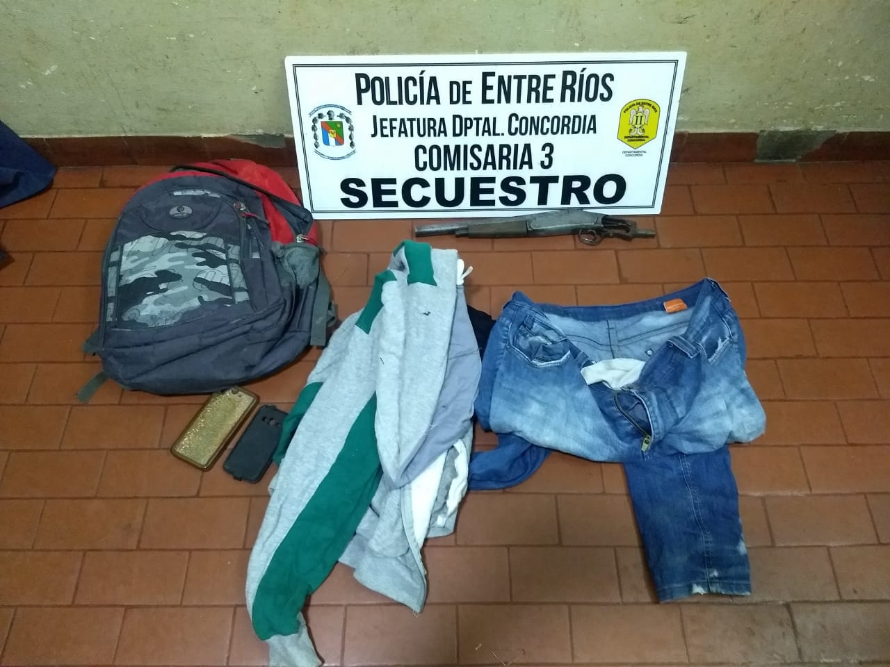 Personal policial constató que no pertenecía a ninguna persona de los alrededores y por disposición del fiscal de turno procedió al secuestro de la mochila, las prendas de vestir y una escopeta recortada de un cañón cal.16 , sin marca, y sin cartuchería. Se realizó acta de procedimiento a los fines de establecer procedencia del arma de fuego, con intervención de la División Criminalística.