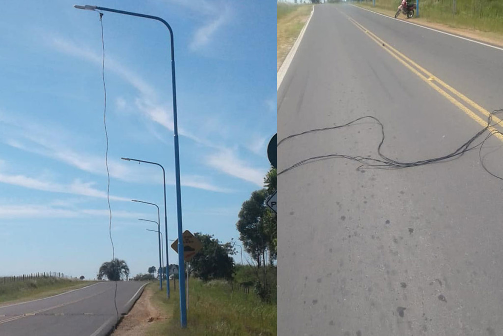 Según se informó desde la comisión vecinal también allí se robaron cables y luminarias, en la ruta de ingreso.