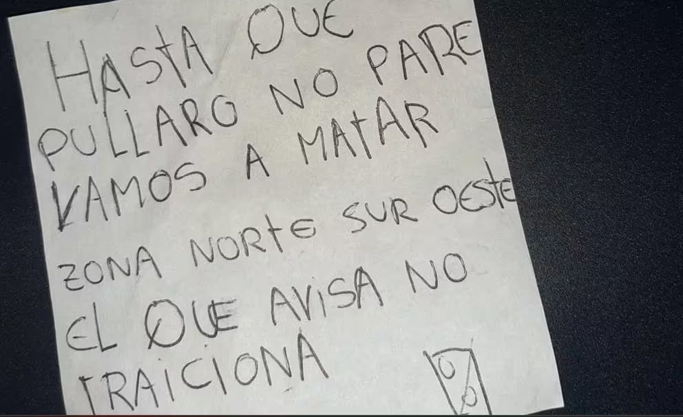 El mensaje dirigido ocurre tras la llegada de efectivos de Gendarmería a Rosario, encabezada por Patricia Bullrich, y tras los cuatro crímenes cometidos la semana pasada, entre ellos, el del colectivero Marcos Caiola y el playero de estación de servicio Bruno Bussanich, baleado en su lugar de trabajo. El sicario dejó una nota: “Esta guerra no es por territorio, es contra Pullaro y Cococcioni… Queremos nuestros derechos, esto para todos los presos”, dijo la misiva, que anunciaba la muerte de más inocentes: “Basta de seguir humillando con la familia”, completó.