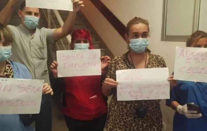 El repudio en el centro de salud fue generalizado, desde familiares de otros pacientes hasta del propio personal. Algunos de ellos mostraron carteles, incluso con mensajes para el gobernador chaqueño Jorge Capitanich. «Basta de impunidad», «Clan Sena, asesinos», «Coqui, los queremos presos a los Sena», se leía.